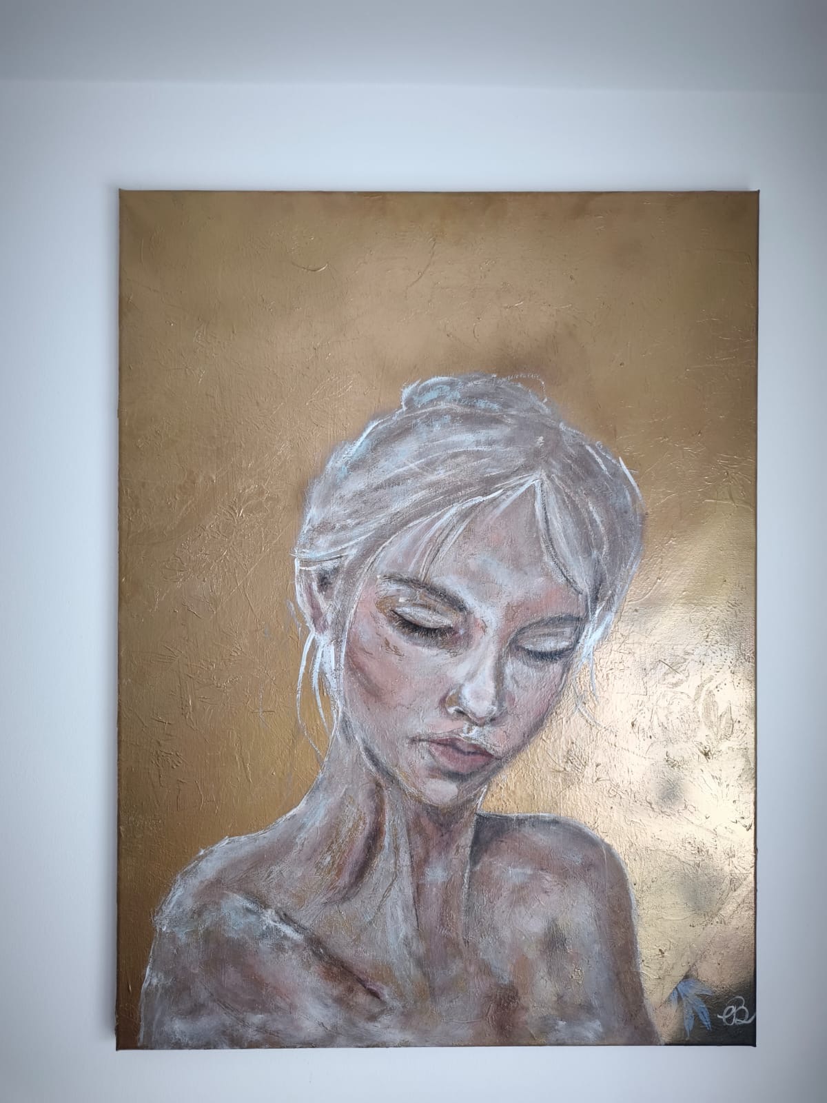 Selbstporträt. Darstellung der Verletzlichkeit einer Frau in Pastel Optik.