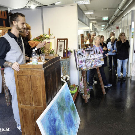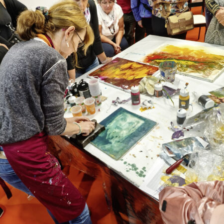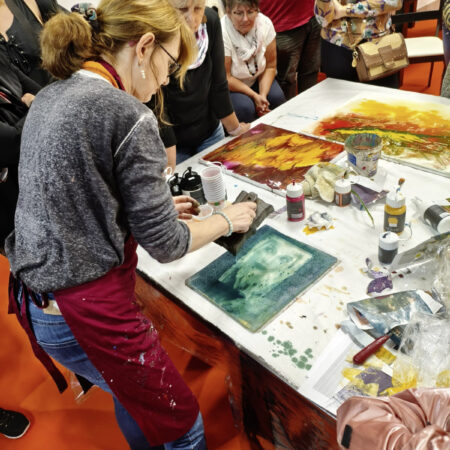 Im Mittelpunkt stehen die vielfältigen Anwendungsmöglichkeiten und die speziellen Eigenschaften der Aquarylic Color: ein Farbmedium, das Leuchtkraft, Fließverhalten und kreative Freiheit in einzigartiger Weise verbindet. Entdecken Sie live, was Aquarylic so besonders macht.