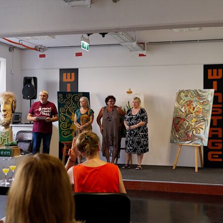 Diese besondere Vernissage entstand aus einem Instagram-Gewinnspiel, welches Ursula Schratt gewonnen hat. Statt alleine auszustellen, teilt sie ihren Gewinn großzügig mit zwei Künstlerkolleginnen der Plattform EGSO: Linda Fink und Siegi Steinauer.